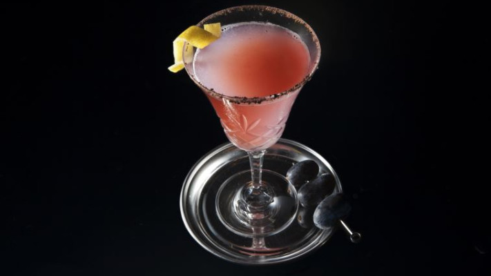 מנערים היטב ומסננים לכוס מעוצבת שאת שפתיה עיטרנו בגרגרי פרג ופלפל אנגלי. מוסיפים רצועות דקיקות של קליפת לימון.