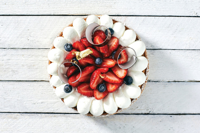 טארט תותים וקרם מסקרפונה וניל | צילום: אמיר מנחםרצוי להצטייד בשקיות זילוף חד־פעמיות ובקנקן גבוה למזיגת הגלסאז'.