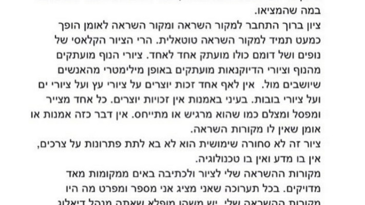 גם אייל גפן שביקר בתערוכה של ברוך העלה פוסט ובו רשם: "ציון ברוך ננזף על שאולי העתיק. אנחנו לא מפסיקים להעתיק, אנחנו לא כל הזמן צריכים להמציא את הגלגל, יותר טוב שנשתמש טוב וחכם במה שהמציאו. ציון ברוך התחבר למקור השראה". עוד הוסיף: "בעיני באומנות אין זכויות יוצרים. כל אחד מצייר ומפסל ומצלם כמו שהוא מרגיש או מתייחס. אין דבר כזה אומן שאין לו מקורות השראה. ציון ברוך הוא בעיני צייר עם יכולות נהדרות ושכל הטרמפיסטים יחשבו באופן אינטליגנטי ולא כמו קרימינלים".