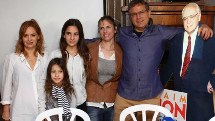 עם משפחתם לצד תמונת אביהם. צילום: רענן כהן