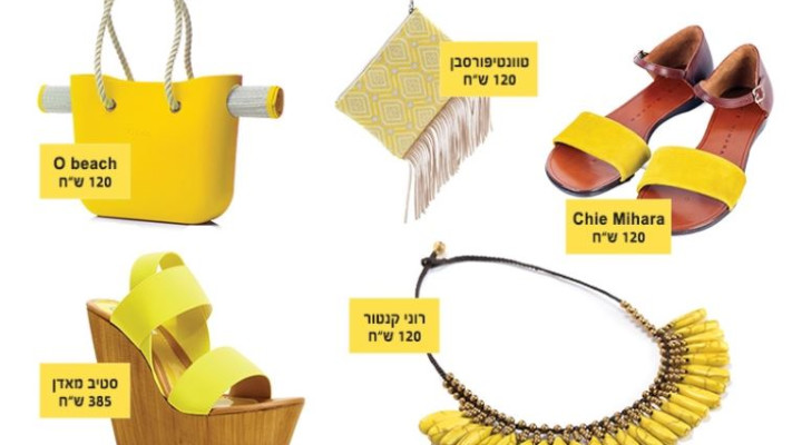 העונה אפשר לראות לצד השמלות והגלביות גם המון אביזרים צהובים. תיקים, סנדלים, שעונים ותכשיטים הם הפריטים שיבלטו כשתסרקו את קולקציות הקיץ, והם ישתלבו עם כל מראה שתבחרו. השילוב החביב עלי הוא של צהוב ולבן כי הוא משדר קיץ וחופש, אך כל אחד יכול לקחת את זה לכיוון שלו.