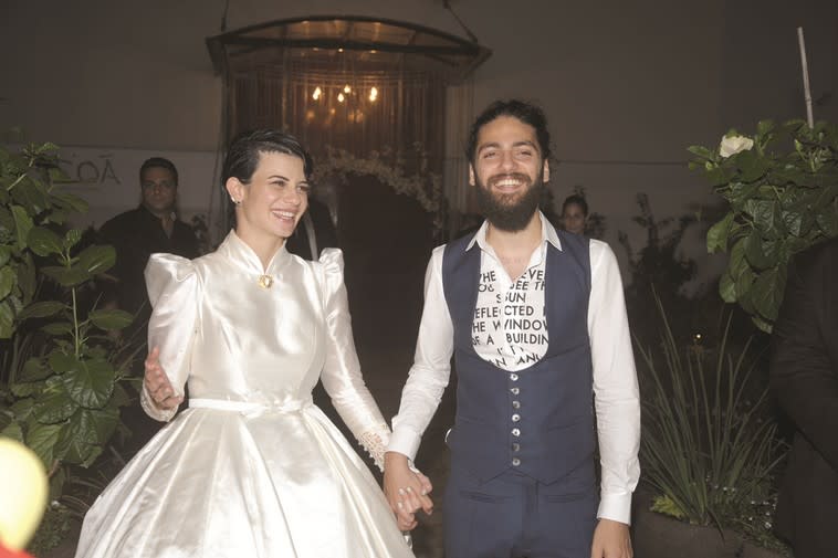 עשרות מעריצות נעו מסביב לאתר בוכות ומתאבלות על נישואיו של הזמר הנערץ עליהן, שהגיע לחופתו בגלבייה לבנה וסנדלים לבנים, עטה כיסוי ראש בנוסח הברסלבים, ענד תליון ענק של סמל השלום ומרח על פניו איפור כבד. הכלה, אגב, הסתפקה בשמלה צנועה בעיצובה של טובה’לה, ופניה היו חפות מאיפור. האולם עוצב בסגנון בוהמייני משהו, עם פרחים, סמלי השלום ואבוקות אש, ועל החופה הופקד רב קונסרבטיבי.