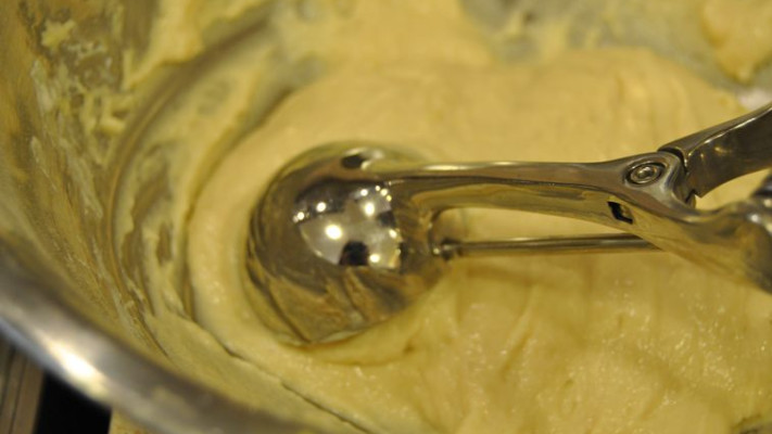 בכפות הידיים צרים מהבצק כדורים בקוטר 5-4 ס"מ. לחילופין ניתן להשתמש בכף גלידה ליצירת כדורים בגודל אחיד. עוטפים את כדורי הבצק במעט קמח.