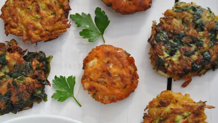 קולפים את הקולרבי, הבטטה והקישוא. גוררים אותם במגררת גסה אל קערה רחבה. מערבבים ומוסיפים את השום, הביצה והקמח. מערבבים שוב ומוסיפים את כל התבלינים. טועמים ומתקנים תיבול בהתאם.