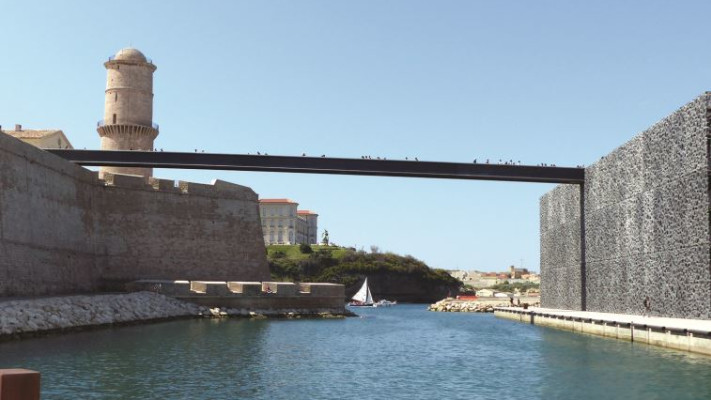 מבנה המוזיאון החדיש עטוף בסבכה מעוצבת של בטון וסיבי פלסטיק הצבועה שחור ומדהימה במקוריות האוורירית שלה, הנוגדת את חומות האבן המוצקות של המצודה. ארבע קומות של תערוכת קבע ותערוכות מתחלפות מוצגות שם וכולן מוקדשות לים התיכון וחופיו. אין זה מפתיע שירושלים היא אחת מכוכבות תערוכת הקבע. על גג המבנה ועל גג המצודה המשוקמת מוקמו בתי קפה ומרפסות מנוחה בשמש. שיטוט על חומותיה של המצודה, העוטפות גן ים תיכוני ושמו "גן ההגירות", מעניק תצפית על אתר התיירות הפופולרי והצפוף ביותר של העיר, הנמל הישן.