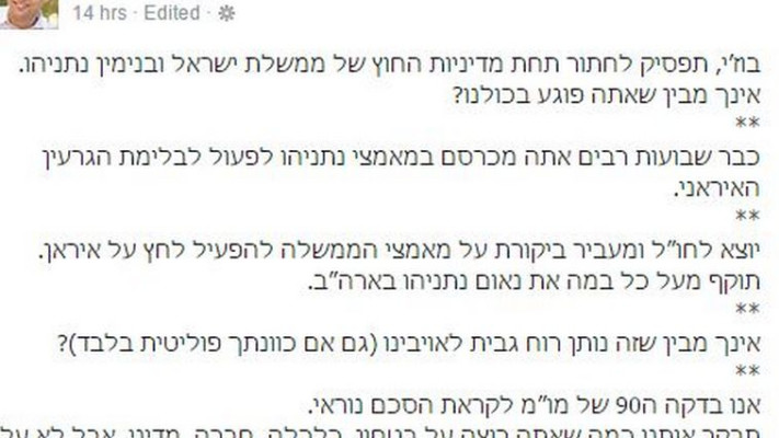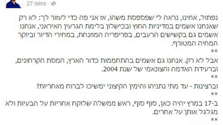 עימות על גבי הפייסבוק בין יו"ר המחנה הציוני, יצחק (בוז'י) הרצוג, לבין יו"ר הבית היהודי, השר נפתלי בנט.