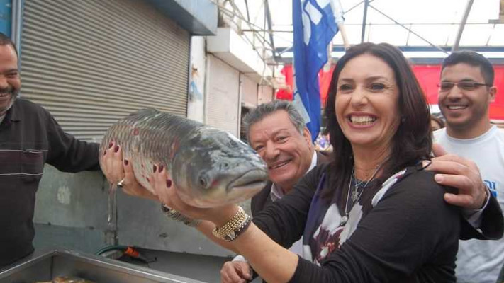 רגב צועדת בין הסמטאות, הדוכנים, הררי השום והפטרוזיליה, הפיתות והפירות היבשים, טועמת תות שדה, מכרסמת עוגייה, מותירה אחריה שובל של מעריצים, מקורבים וצלמים. בדוכן הדגים מבקשים להניח בין זרועותיה אמור לבן, אורכו אולי חצי מטר, ורגב לא מסוגלת לסרב. זו מעין קלישאה פוטוגנית על מסע בחירות, אבל היא בכל זאת נראית אותנטית.