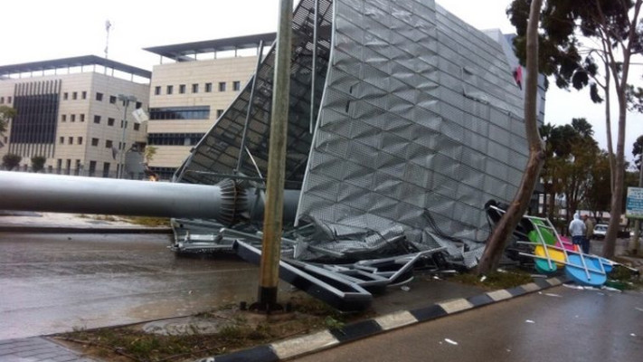 בנתניה התרחשו שני אירועים, אשר רק בנס לא גרמו לנפגעים. ברחוב בן גוריון התנתקו חלקי אריחים ופיגומים מבניין אשר נמצא בבנייה, החלקים התעופפו לכיוון הכביש, מה שגרם לסגירה מוחלטת של האיזור על לטיפול בתקלות. עוד היה חשש מהמעלית הצדדית שנמצאת בבניין, אשר נחשבת לדבר מסוכן. באיזור התעשייה, סמוך לאצטדיון העירוני, נפל שלט פרסומת, ששוקל כ-50 טונות על הכביש וגרם לנזק גדול באיזור, שנחסם גם כן לתנועה. החשמל המחובר אליו נותק.