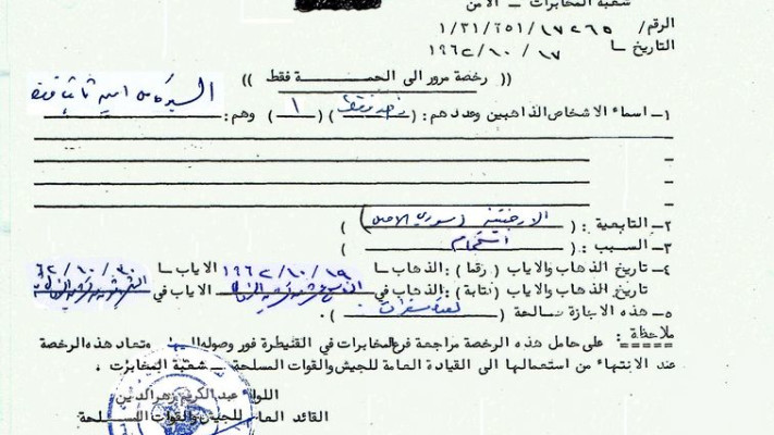 הערה: על נושא אישור זה לפנות לענף המודיעין בקוניטרה כדי להחזירו.