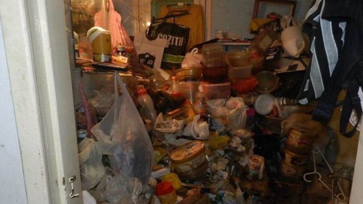 בדירה נמצאו מוצרי מזון בשלבי ריקבון מתקדם, תיקנים, מכרסמים ואף נשל של נחש באחת מפינות הבית. בשל הסכנה התברואתית והצחנה נאלצו העובדי הניקיון לנקוט במשנה זהירות ולהשתמש במסכות ואמצעים נוספים. לאחר הפינוי הראשוני ימשיכו בפעולות ניקיון וחיטוי הבית באמצעות חברת ניקיון.