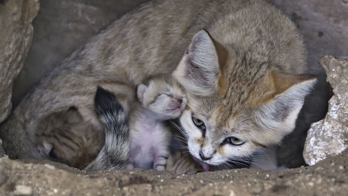 שמחה והילולה בספארי: רותם חתולת החולות המליטה שלושה גורים