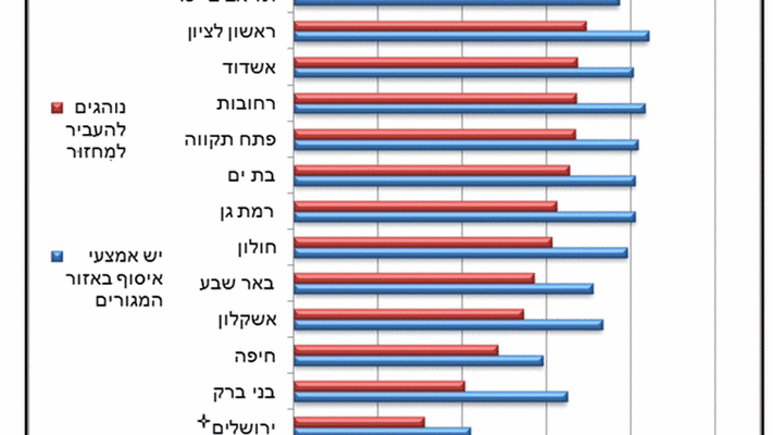 מוחזרו כ-900,000 טונות של פסולת ברשויות המקומיות שהם רק כ-18% מסך הפסולת הנאספת. ומיהם יצרני האשפה הגדולים ביותר? מהנתונים עולה כי 28% ממשקי הבית בישראל משליכים עד 79 ליטרים של אשפה בשבוע, 27% משליכים 199-80 ליטרים אשפה ו-43% משליכים 200 ליטרים ומעלה של אשפה בשבוע. מבין הערים הגדולות, בירושלים ובבני ברק שיעור גבוה יחסית של משקי בית המשליכים 200 ליטרים ומעלה של אשפה בשבוע (50% ו-49%, בהתאמה), לעומת 27% בתל אביב-יפו ובבת-ים.