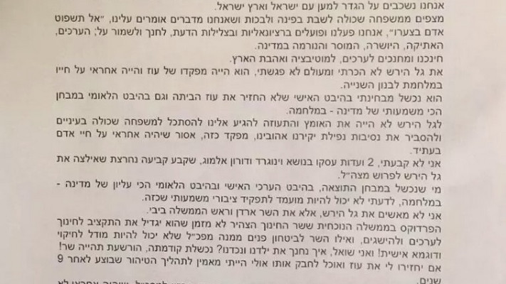 עוד הוא כתב: "שתי ועדות שעסקו בנושא וינוגרד ודורון אלמוג, שקבע קביעה נחרצת שאילצה את גל הירש לפרוש מצה"ל. מי שנכשל במבחן התוצאה, בהיבט הערכי האישי ובהיבט הלאומי הכי עליון של מדינה במלחמה, לדעתי לא יכול להיות מועמד לתפקיד ציבורי משמעותי שכזה".