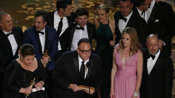 לאונרדו דיקפריו עם הפסלון הנכסף | צילום: רויטרס1. טקס האוסקר: הבחירה ב"ספוטלייט" היא חריצת לשון של הוליווד