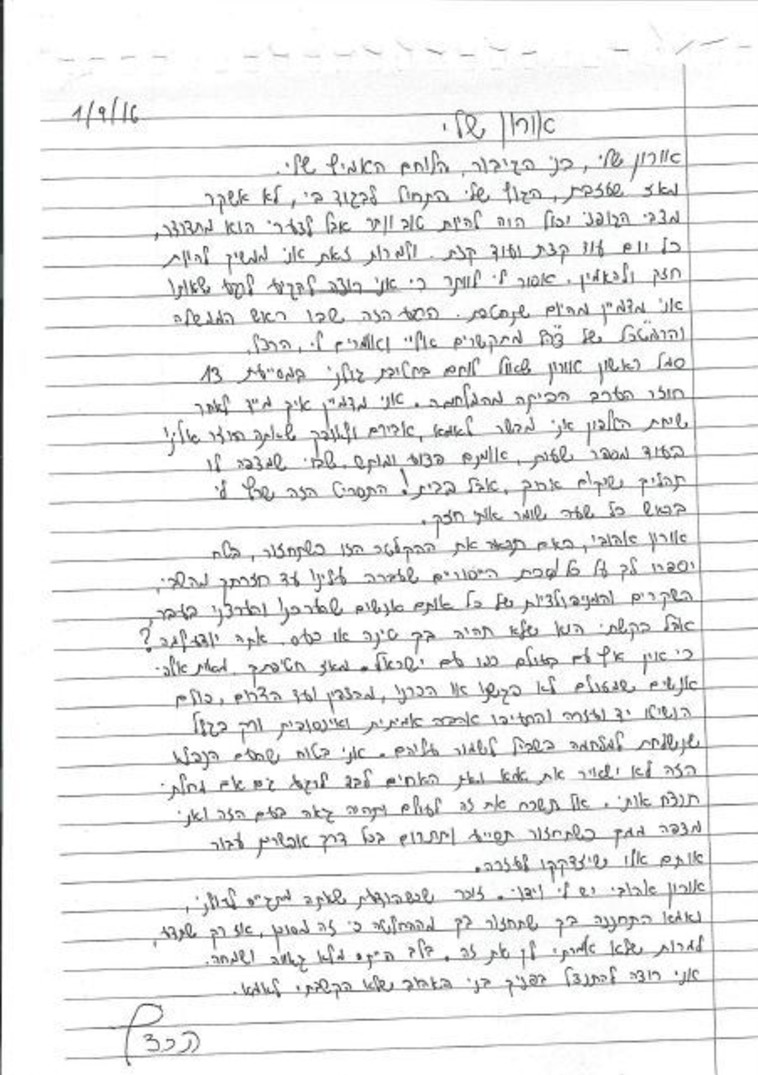 על מלאכת הכתיבה הקשה סיפר האח: "המכתב נכתב ימים ספרים לפני המקרה של אבא, שלושה ימים לפני פטירתו. אבא ביקש ממני שאני אכתוב מכתב כשישבתי לידו במיטה ב'תל השומר', אבל לא היה יכול לכתוב, היה לו מאוד קשה. הוא ביקש ממני להקליט אותו מקריא את המכתב. נעשו שני ניסיונות שלצערי לא צלחו. כעבור כמה שעות הוא איבד את ההכרה. בכוחותיו האחרונים הוא חתם על המכתב".