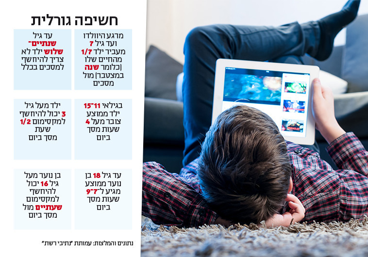 השבוע הלאומי לגלישה בטוחה ברשת, שיחל היום, נועד להעלות את המודעות לסכנות הטמונות בהתמכרות למסכים. רבות מהסכנות הללו, כאמור, הן גם בריאותיות. "מרגע היוולדו ועד גיל שבע מעביר ילד 1/7 מהחיים שלו מול מסכים", אומר ד"ר גדי ליסק, דוקטור לפסיכולוגיה קלינית, מתמחה בפסיכופיזיולוגיה יישומית וביופידבק ואחראי תחום השפעת מסכים על ילדים בעמותת "נתיבי רשת", הפועלת להגברת המודעות הציבורית לשימוש נבון ומוגן באינטרנט ובמולטימדיה. "בגילאי 11־15 ילד ממוצע צובר מעל ארבע שעות מסך ביום, ועד גיל 18 בן נוער ממוצע מגיע לשבע עד תשע שעות מסך ביום, כשישראל היא מהמובילות בשעות המסך בעולם".