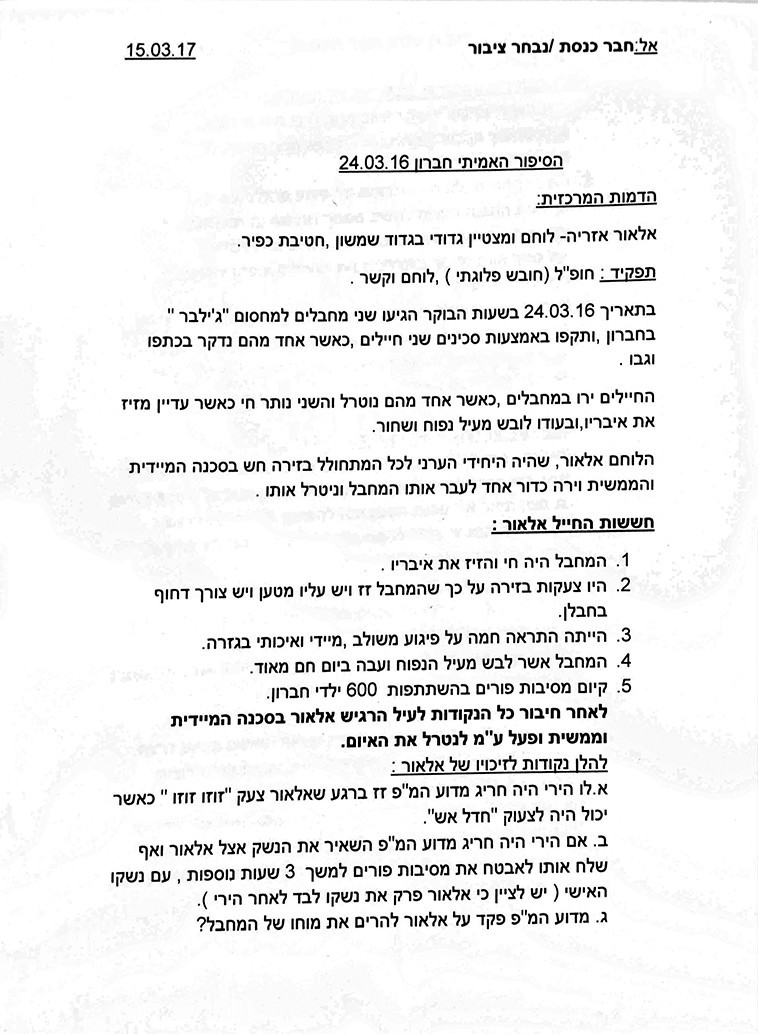 האם הוסיפה בדמעות "אומרם שהמחבל היה כפות או מנוטרל. אני שואלת, מה זה מנוטרל? הוא היה חי, הוא זז. גם במד"א לא הסיכמו לטפל מחשש שיש עליו מטען, ואפילו במכון הפתולוגי הגופה שלו המתינה שלושה ימים כי חששו שיש עליו מטען, ורק לאחר שהגיע החבלן הסכימו לטפל בגופה. אז מה זה אומר?"