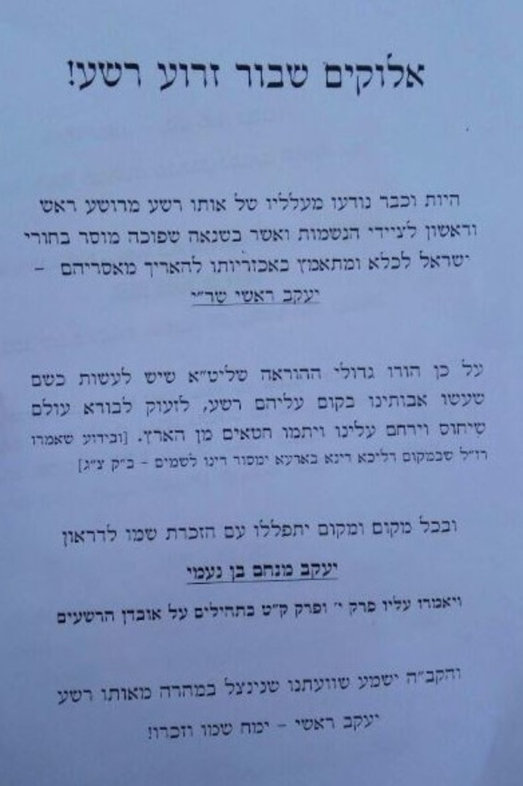 כרזות שהודבקו באזור ביתו של ראש מדור גיוס בני ישיבות הביאו את מחאות החרדים נגד צה"ל לשיא חדש: "צייד נשמות רשע". הפגנות ברחבי הארץ נמשכות