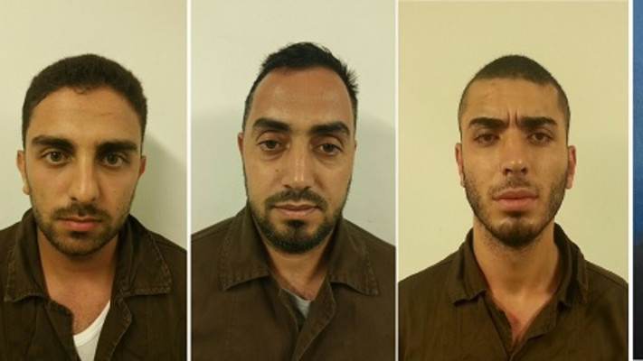 חוליית חמאס החשודה ברצח איתם ונעמה הנקין ז"ל. מימין: סמיר זהיר אבראהים כוסא, יחיא מוחמד נאיף עבדאללה חג' חמד, ראע'ב מוחמד עליוי, זיד זיאד ג'מיל עאמר, וכרם לוטפי פתחי רזק.