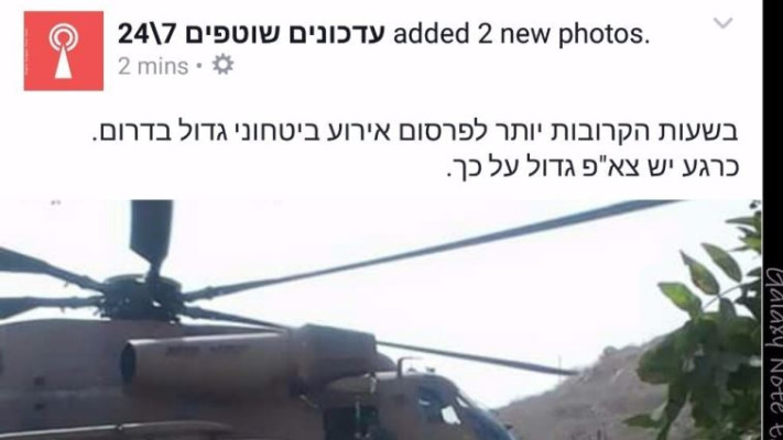 מפיצי השמועה טרחו לבשר כי קיים צו איסור פרסום לאירוע. לצד זאת תמונות שרצו בוואטסאפ ובהן נראה חילוץ מוסק של תאונת דרכים בה נפצעו שני אנשי ביטחון, התערבבו לדיווח מהדרום ויצרו אירוע חדש.