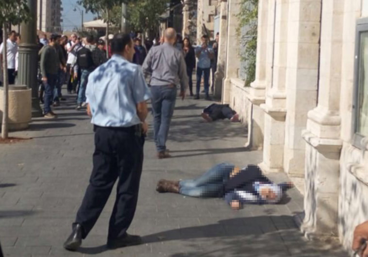 מצלמת אבטחה ברחוב יפו קלטו את שתי המחבלות הצעירות מתרוצצות עם מספריים בידיהן ומנסות לדקור עוברים ושבים. אזרח הטיח באחת מהן כיסא ומאבטחים מיהרו לזירה