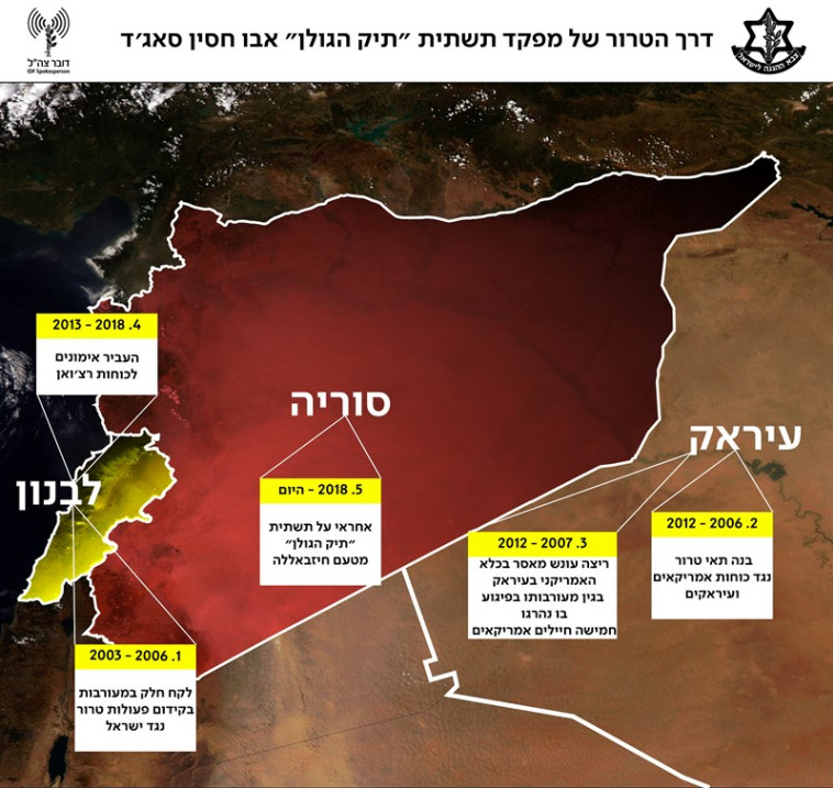 בישראל נוכחו לדעת כי פעילי הארגון פועלים בחסות תשתיות סמי־צבאיות, כמו הזרוע הצבאית של המפלגה הסורית הסוציאליסטית והמשמר הלאומי הסורי, וכך מסווים את פעולתם כפעילי חיזבאללה. יש לציין כי פעילות תחת אותם ארגונים נחשבת לגיטימית מבחינתו של אסד. פעילות תשתית הטרור נעשית בעיקר בצפון רמת הגולן, באזור היישובים ח'דר, ערנה, ח'אן ארנבה וקוניטרה, אזור הקרוב גם לגבול לבנון ולרכס הר דב. התשתית כוללת היום עשרות פעילים, רובם מח'דר.