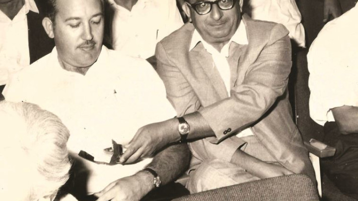 באמצע שנות ה–60, באחד האירועים המשעממים של מפא"י באולם אהל בתל אביב, הסתובבתי עם המצלמה וחיפשתי איזה אירוע חריג לצלם. פתאום הבחנתי ש"החבר'ה הטובים" - צעירי בן–גוריון - מעבירים בחשאי חבילת שוקולד ומפרקים אותה. כיוונתי על נבון, וכשהוא העביר את השוקולד לגד יעקבי דפקתי פלאש, נבון היה מופתע (ראו צילום), ואחרי הפלאש חפיסת השוקולד הפסיקה את הסיבוב.