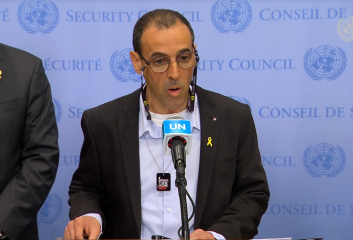 "אני יודע שאתם דנים כאן במצב ההומניטרי בעזה לעתים קרובות מאוד. אבל תרשו לי לומר לכם, כעד ראייה - ראיתי מה קרה לסיוע הזה. חמאס גונב את זה. אני ראיתי מחבלי חמאס נושאים ארגזים עם סמלי האו"ם ואונר"א עליהם לתוך המנהרה, עשרות ועשרות קופסאות, במימון הממשלות שלכם, מאכילות מחבלים שעינו אותי ורצחו את משפחתי. הם היו אוכלים ארוחות רבות ביום מהסיוע של או"ם שהיה מונח לפנינו, ומעולם לא קיבלנו מהסיוע הזה דבר. כשאתם מדברים על סיוע הומניטרי, תזכרו את זה: חמאס אוכל כמו מלכים בעוד החטופים גוועים ברעב. חמאס גונב מאזרחים, חמאס חוסם את הסיוע מלהגיע למי שבאמת זקוק לו", אמר.