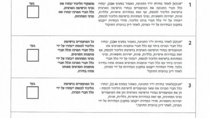 על פי הסיכום נקבע כי בטופס ההצבעה יהיו ארבע הצעות, כשבפועל על הפתקים יש רק שלוש.