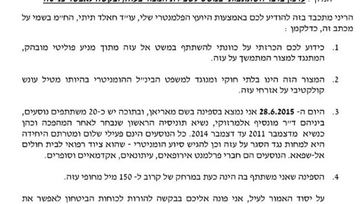 ח"כ גטאס לנתניהו: "תן לספינה להגיע לעזה, כולם פעילי שלום"