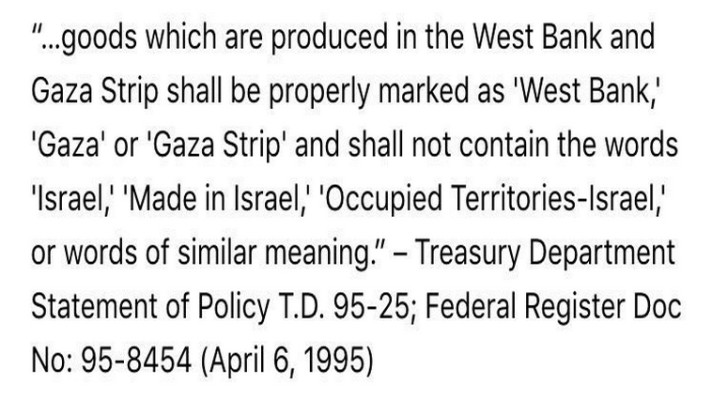 למרות הפגישה המוצלחת בין ראש הממשלה בנימין נתניהו לנשיא ארצות הברית ברק אובמה וההצהרות החוזרות ונשנות כי נפתח דף חדש ביחסי ישראל- ארה"ב, במעצמה מסרבים לומר כי הם מתנגדים לסימון מוצרים מהתנחלויות. יתרה מכך, במסמכי המדיניות של משרד האוצר האמריקאי המתייחס לייצוא מוצרים לארצות הברית נכתב כי "כל מוצר המיוצר בגדה או באזורים המוגדרים כרצועת עזה לא ישאו את הכיתוב מיוצר בישראל". גורם בממשל האמריקני אמר כי בשטח, נכון לעכשיו, אין בארצות הברית סימון מוצרים.