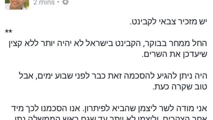 רה"מ ושר החינוך קיבלו את הפשרה שהציע שר הבריאות ליצמן, ולפיכך מינויו של שר הביטחון הנכנס ייצא לדרך כמתוכנן. בנט: "היה ניתן להגיע להסכמה כבר לפני שבוע"