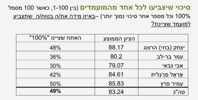 נתון נוסף מעניין שעולה מן הסקר קשור לאחוזי ההצבעה הצפויים. 74% מהנשאלים הצהירו כי הסיכוי שיבואו להצביע הוא מעל 90 %. 10% נוספים הצהירו על סיכוי די גבוה. ספר הבוחרים של המפלגה ייסגר סופית בשבוע הבא. נכון לעכשיו המספר עומד על כ-50 אלף. חשוב לציין כי אם מספר המתפקדים ירד מתחת ל-50 אלף הרי שתהיה לכך השלכה שלילית על גובה תקציב הקמפיין של כל מועמד.