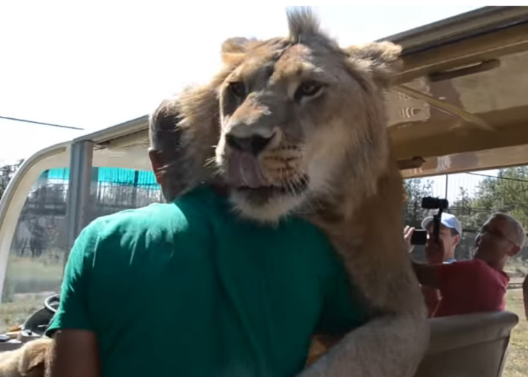 טועם את האוכל או מפגין חיבה? אריה ליקק וחיבק מבקרים בספארי