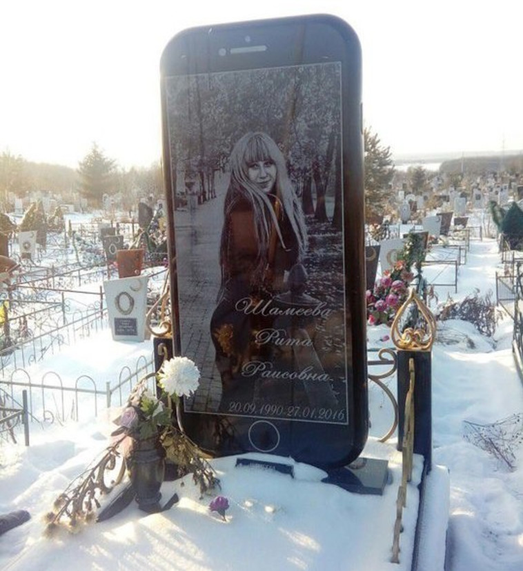 המצבה הייחודית הוצבה בבית הקברות יוז'נואה, בעיר באופה (UFA), היא עשויה בזלת ומתנשאת לגובה של כ-1.5 מטרים, ויש בה אפילו תמונה של ריטה כשומר מסך. מעט מאוד ידוע על המנוחה, ריטה, פרט לכך שהיא מאוד אהבה לטייל בחו"ל. וכמובן שהיא ממש אהבה את האייפון שלה.