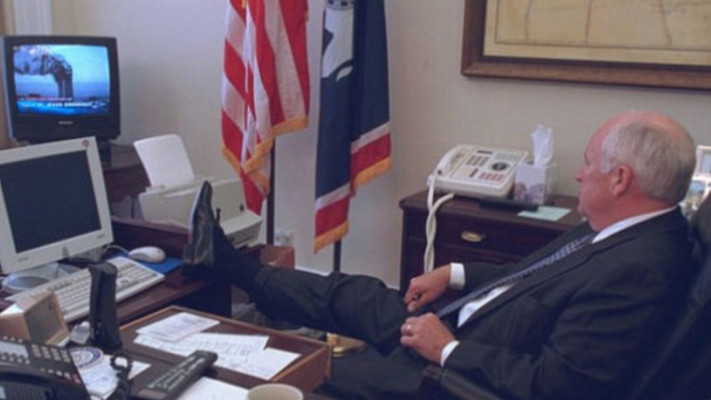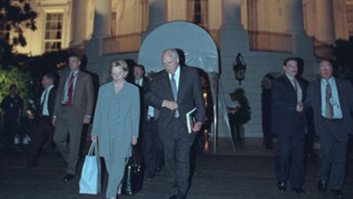 בתמונה אחת נראה סגן הנשיא דיק צ'ייני, מניח רגליו על שולחן כתיבה כשהוא מתבונן בטלוויזיה בחדשות בשידור חי של הפיגועים. בתמונה נוספת הוא נראה יחד עם אשתו כשהם מועברים למיקום לא ידוע למען ביטחונם.