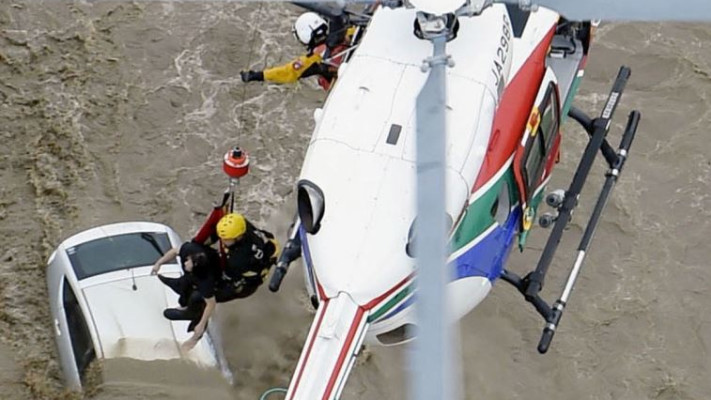 תושבים נראו בטלוויזיה כשהם מנופפים במגבות כשהם מחכים לסיוע, לאחר שהנהר קינוגאווה עלה על גדותיו והציף את העיר.