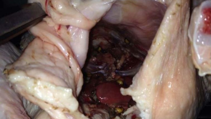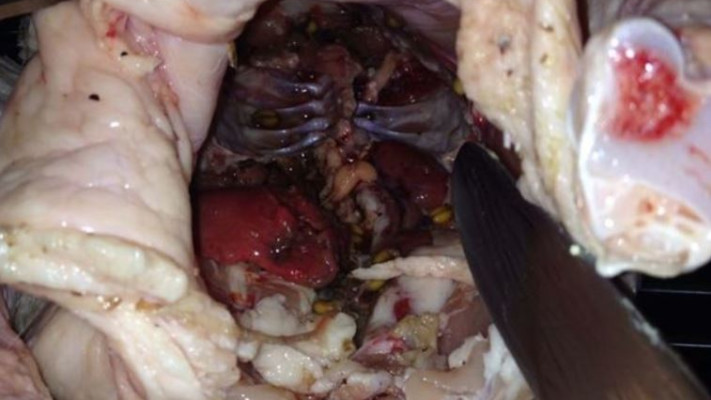 מה רבה הייתה תדהמתם כשהם גילו שהעוף לא היה נקי וכי וצוות חנות המזון לא הוציא את קרביו, כך שהתגלה להם מחזה לא סימפטי בו מערכת העיכול של העוף היתה עדיין מלאה בפסולת ומזון לא מעוכל. אכן, מחזה לא נעים.