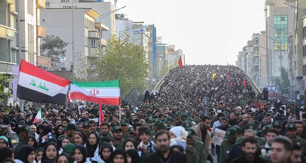 נמשך מסע הלוויה של מפקד כוח קודס, קאסם סולימאני, ושל יתר ההרוגים במתקפה האמריקאית, בהם בכיר המיליציות הפרו־איראניות אבו מהדי אל־מוהנדס, אחרי שהגופות הגיעו אתמול בטיסה מעיראק לאיראן. אלפים השתתפו אתמול בטקס בעיר אהוואז שבדרום מערב איראן, כשהיום (שני) הגיעו הארונות לטהרן ומחר צפוי סולימאני להיקבר בעיר הולדתו קרמאן שבדרום מזרח המדינה. במהלך הטקס נראה המנהיג העליון של איראן כשהוא ממרר בבכי בזמן התפילה.